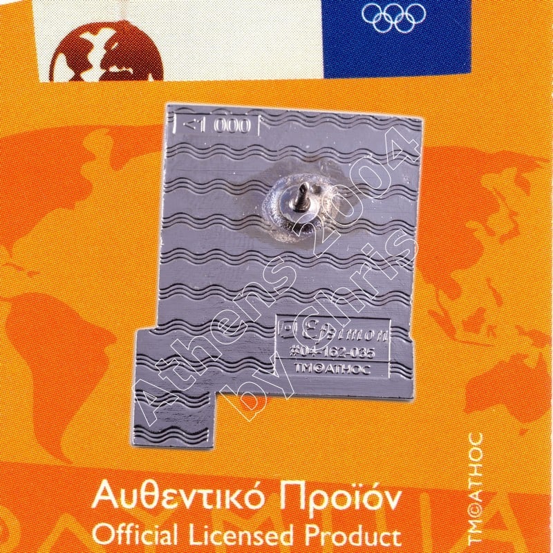 The pin depicts the Torchbearer passing from a monument of Andros city